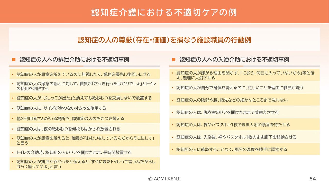 P54:認知症介護における不適切ケアの例