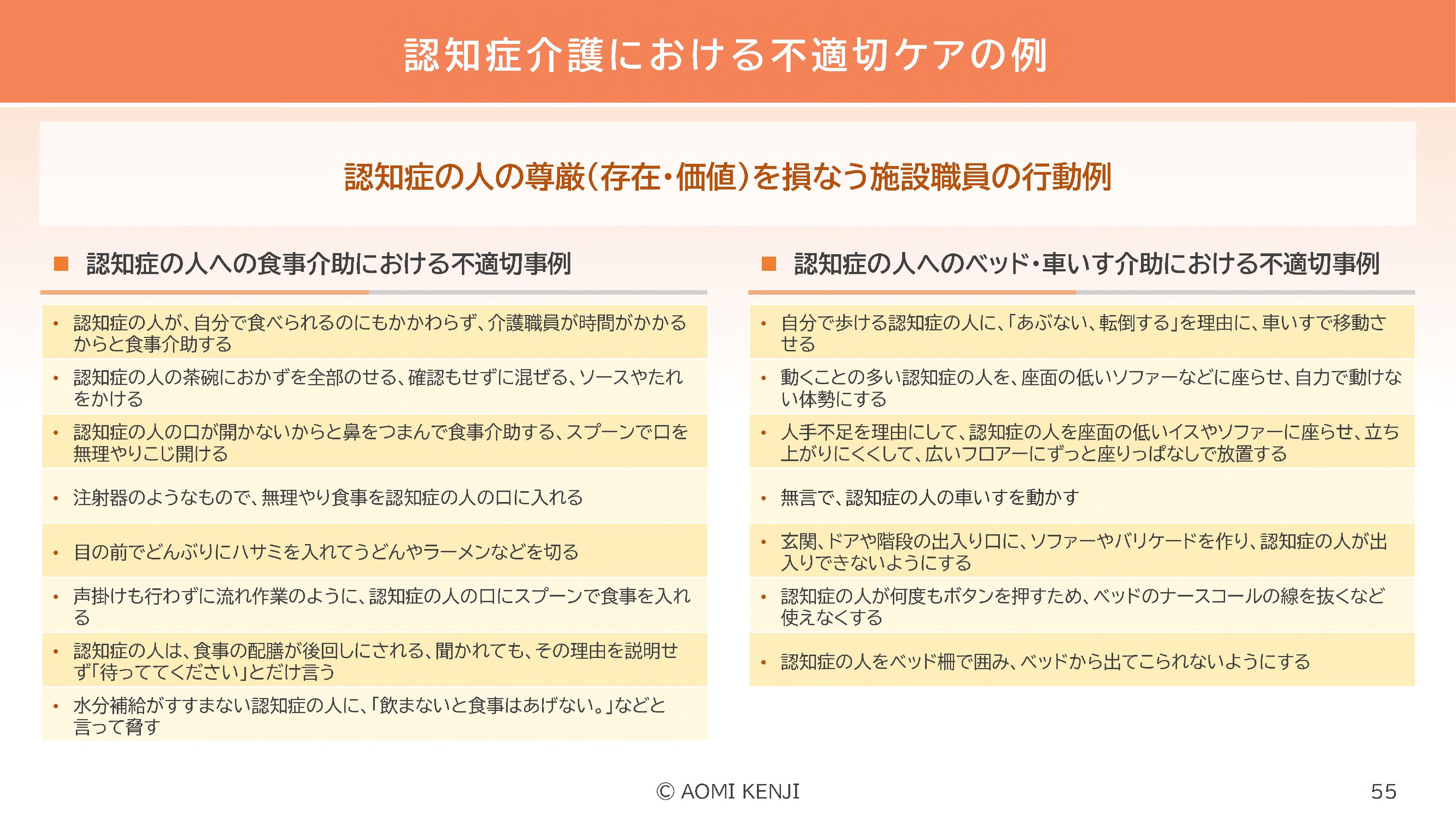 P55:認知症介護における不適切ケアの例